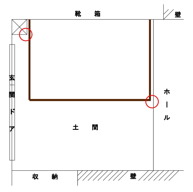 ゲートは タイル貼りの玄関土間に 壁面収納の靴箱前に設置します。