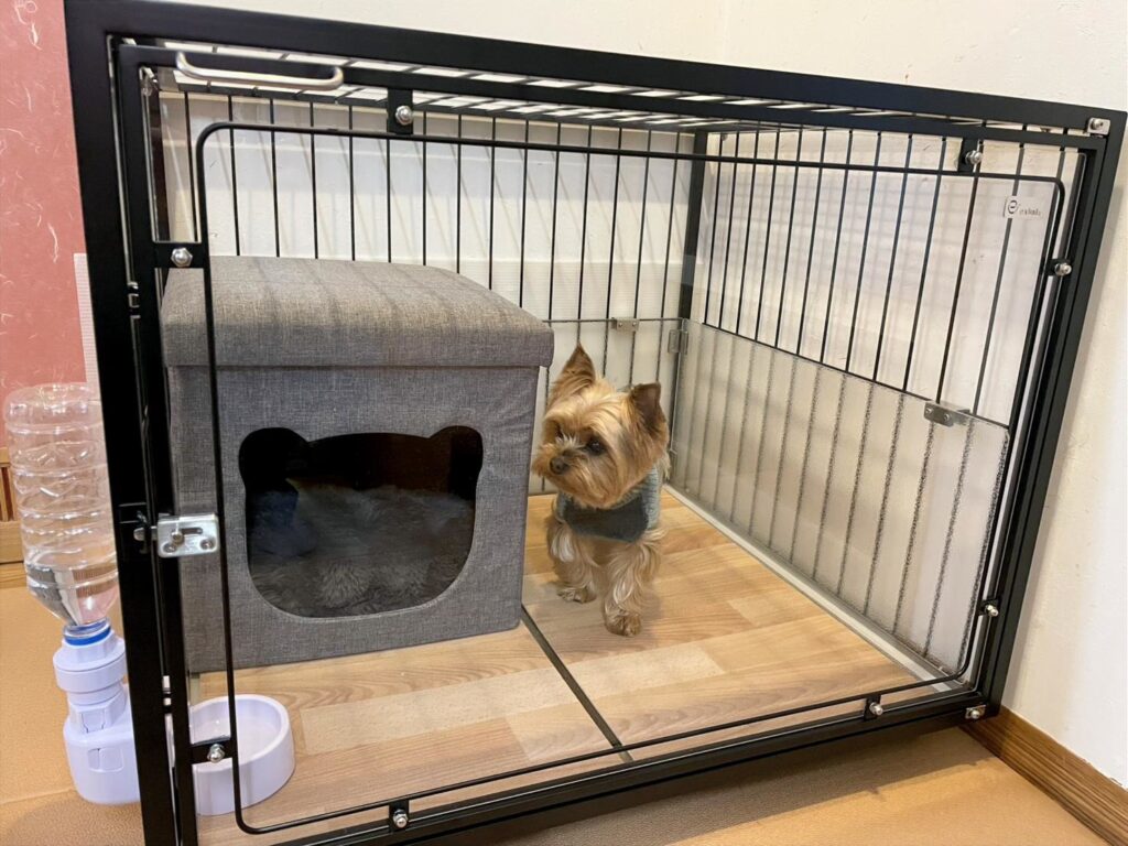 今まで広いお庭でのびのび過ごしてきたヨークシャテリアさん、この度 北陸地方へお引っ越しすることになりました。慣れない雪の中でのお散歩など 初めての体験も多いので、まずは おうちの中で落ち着けるようにしてあげたい!ということでお作りしたケージです。
